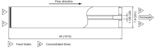 (1)每一支膜元件在出廠時均配有一個濃水密封圈、一個連接適配器及相應的O型圈和一個產(chǎn)水封頭(8英寸內(nèi)連接式膜元件,不一定要使用),它們連同膜元件一起被放置在包裝箱中,具體內(nèi)容以實物為準。