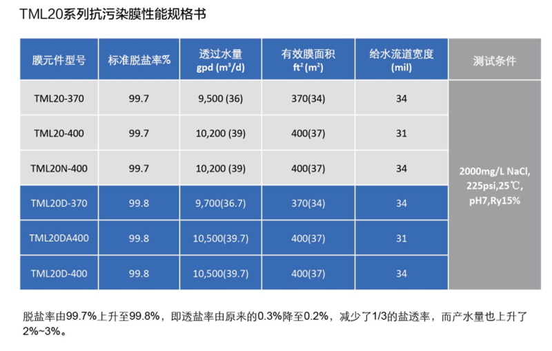 在脫鹽率、水通量、抗壓密性能、抗污染性能和膜性能穩(wěn)定性等方面性能優(yōu)越。 |