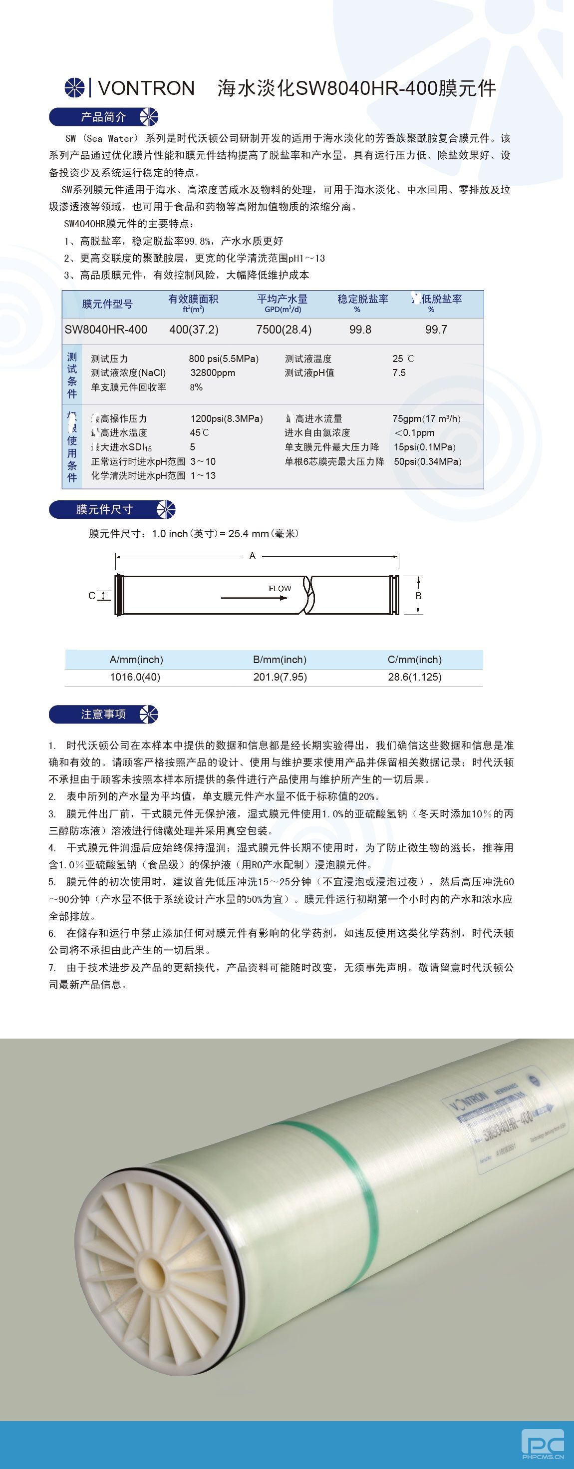匯通SW4021海水淡化膜元件