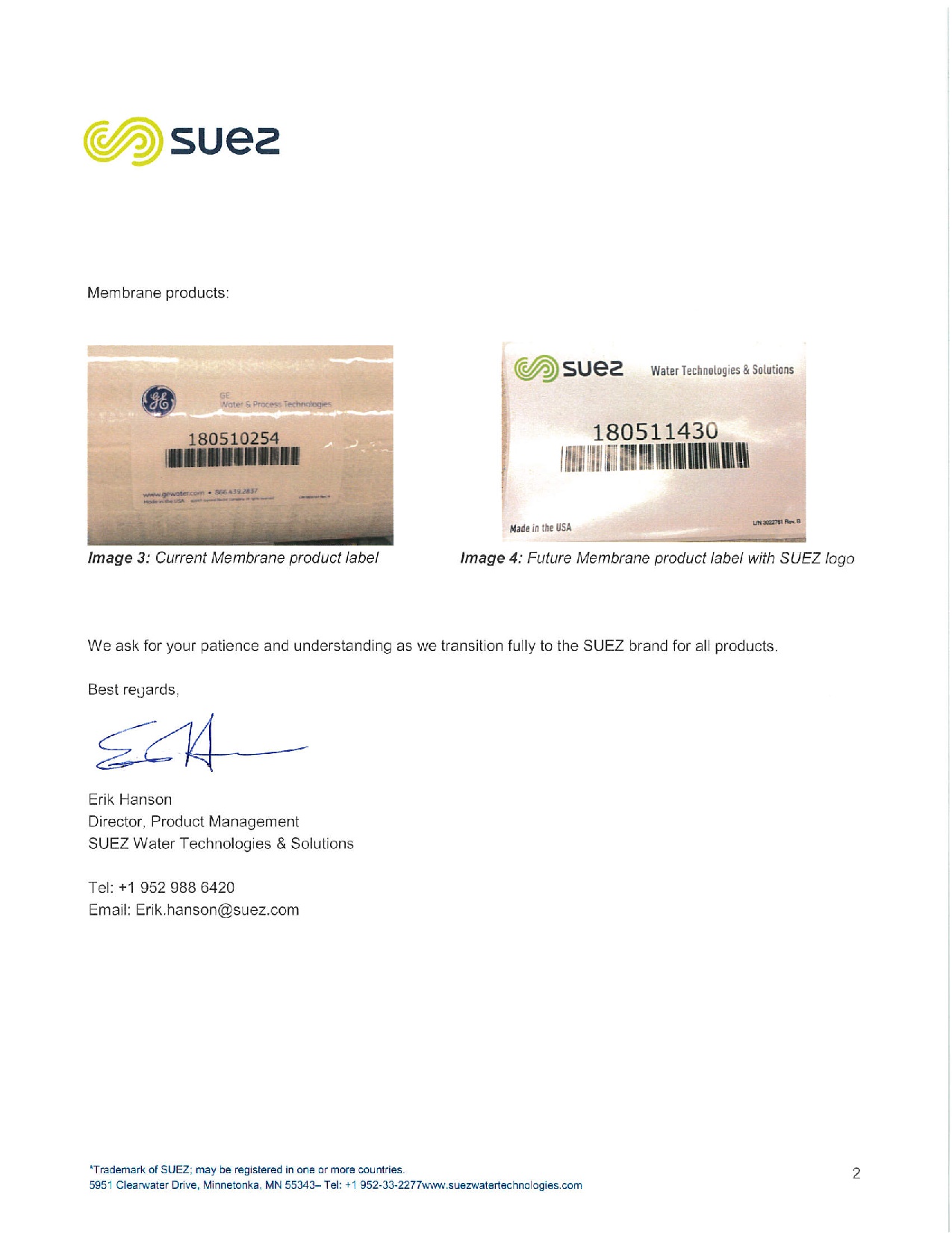 SUEZ美國(guó)工廠相關(guān)產(chǎn)品(進(jìn)口膜,濾芯)從6月1號(hào)開(kāi)始使用SUEZ標(biāo)志的包裝,所以請(qǐng)注意進(jìn)口產(chǎn)品的標(biāo)志,在發(fā)貨時(shí)盡量發(fā)相同標(biāo)志的貨物。