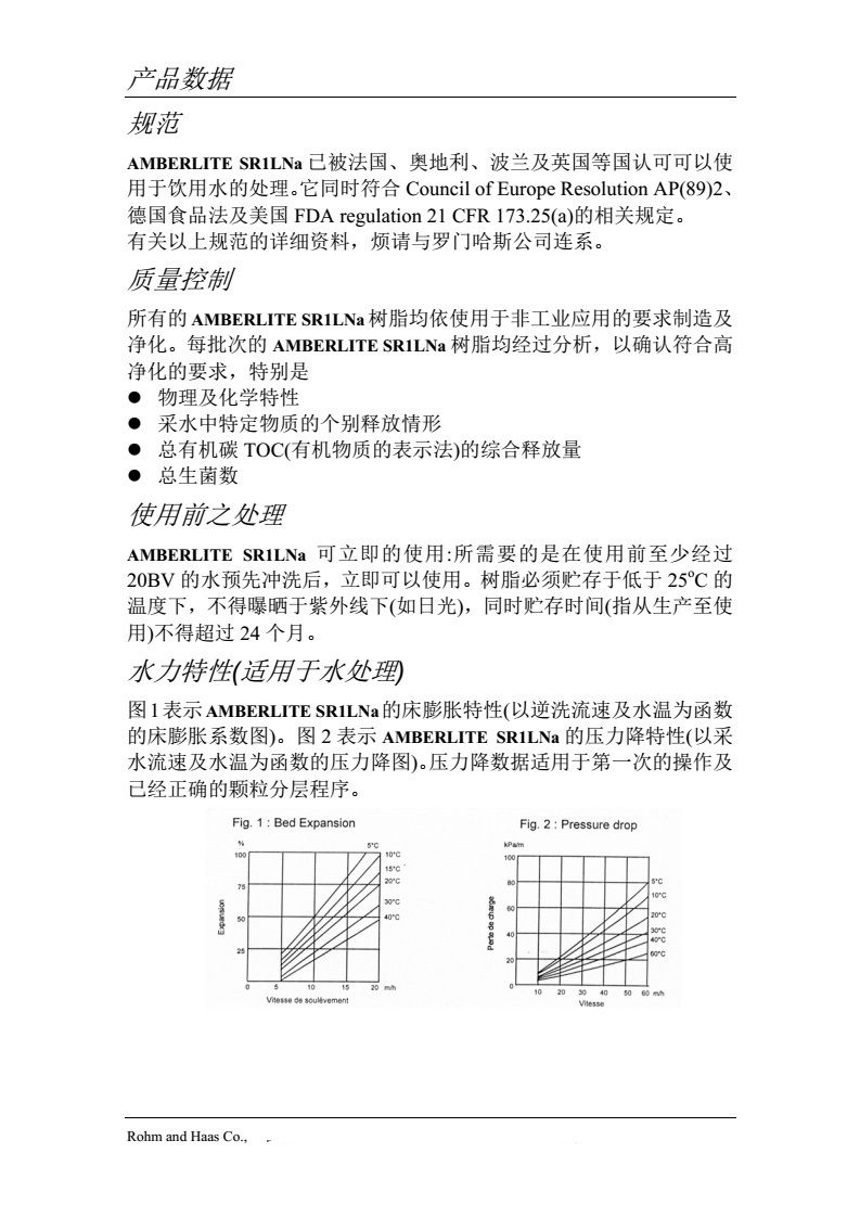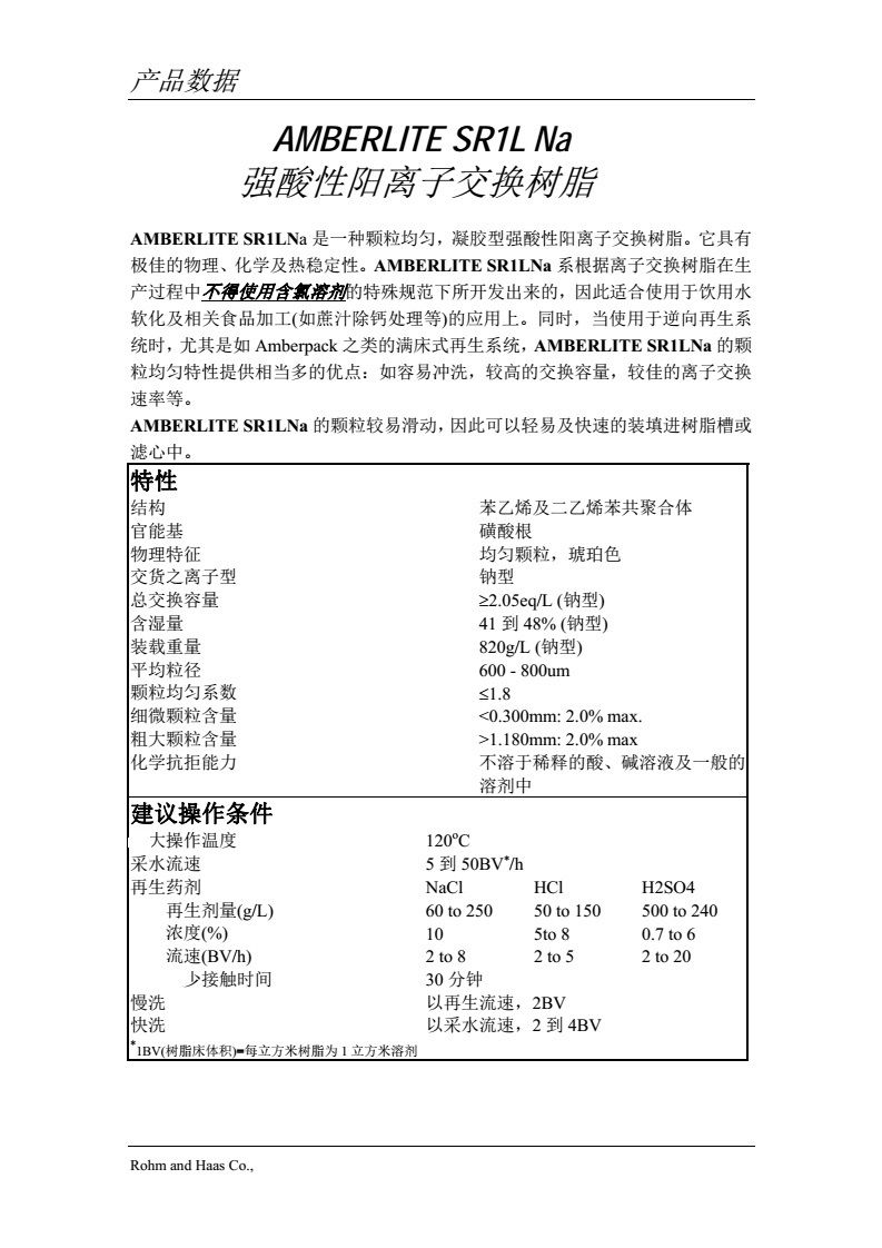 羅門哈斯樹脂AMBERJET SR1LNa食品級(jí)軟化樹脂