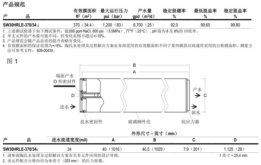 陶氏 FILMTEC™ SW30HRLE-370/34i 是一種高耐久性、高脫除率、高生產(chǎn)率海水元件,用于污染嚴(yán)重或給水條件嚴(yán)苛的情況下,有助于系統(tǒng)的穩(wěn)定運(yùn)行和產(chǎn)水成本的降低。